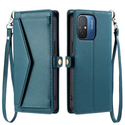 Funda de Cuero con Ranura para Múltiples Tarjetas y Cordón para Redmi 11A 4G Global Wallet (Verde)