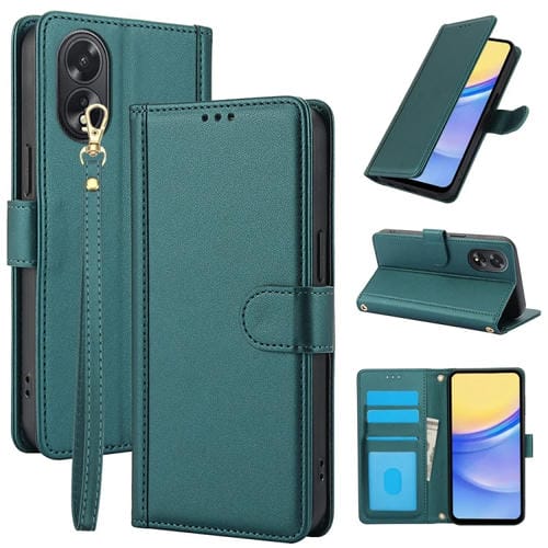 Funda de Cuero con Ranuras para Tarjetas y Diseño de Piel Sintética con Cordón Doble para Oppo A38 4G Global/A18 4G (Verde)