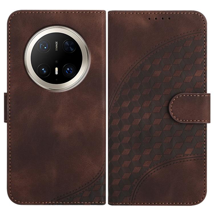 Funda de Cuero con Relieve Cabeza de Elefante para Huawei Mate 70 Pro y Mate 70 Pro+ con Cordón (Café)