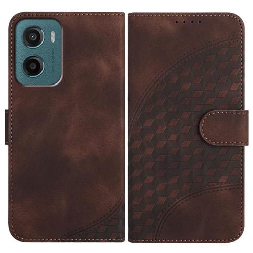 Funda de Cuero con Relieve de Cabeza de Elefante para Motorola Moto G05 con Cordón (Café)