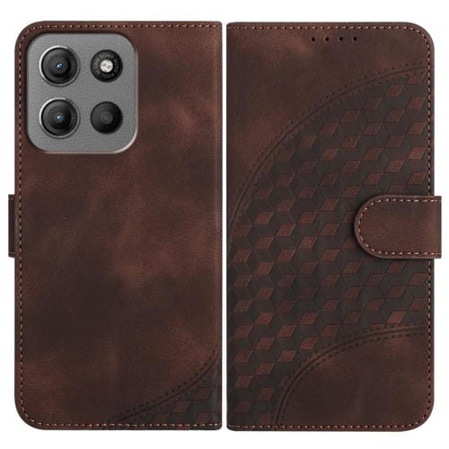 Funda de Cuero con Relieve de Cabeza de Elefante para Motorola Moto G15 con Cordón (Café)
