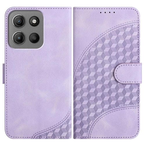 Funda de Cuero con Relieve Cabeza de Elefante para Motorola Moto G15 con Cordón (Morado Claro)