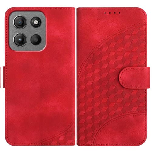Funda de Cuero con Relieve de Cabeza de Elefante para Motorola Moto G15 con Cordón (Rojo)