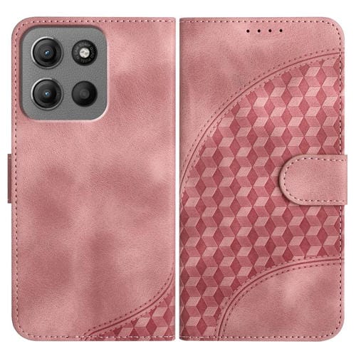 Funda de Cuero con Relieve de Cabeza de Elefante para Motorola Moto G15 con Cordón (Rosa)