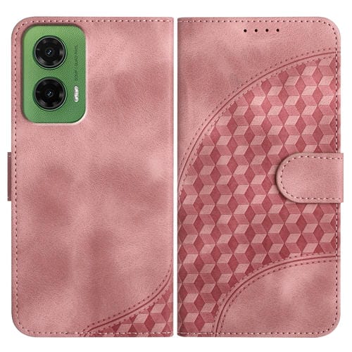 Funda de Cuero con Relieve de Cabeza de Elefante para Motorola Moto G35 Yx0060 con Cordón (Rosa)