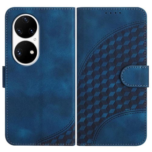 Funda de Cuero Huawei P50 Pro con Relieve de Cabeza de Elefante y Cordón (Azul Real)