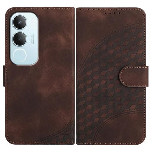 Funda de Cuero con Relieve de Cabeza de Elefante para Teléfono Vivo Y19S Global con Cordón (Café)