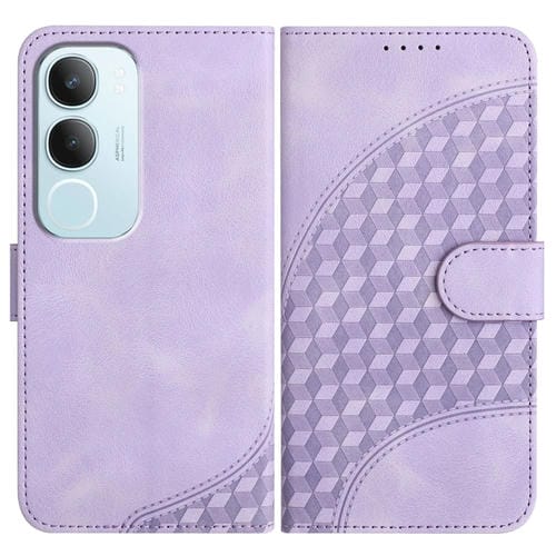 Funda de Cuero con Relieve de Cabeza de Elefante para Teléfono Vivo Y19S Global con Cordón (Morado Claro)