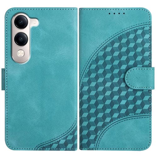Funda de Cuero con Relieve de Cabeza de Elefante y Cordón para Vivo Y29S 5G / Y04 4G (Azul Claro)