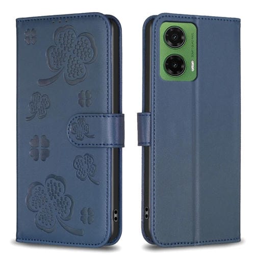Funda de Cuero con Relieve de Cuatro Hojas para Motorola Moto G35 (Azul)
