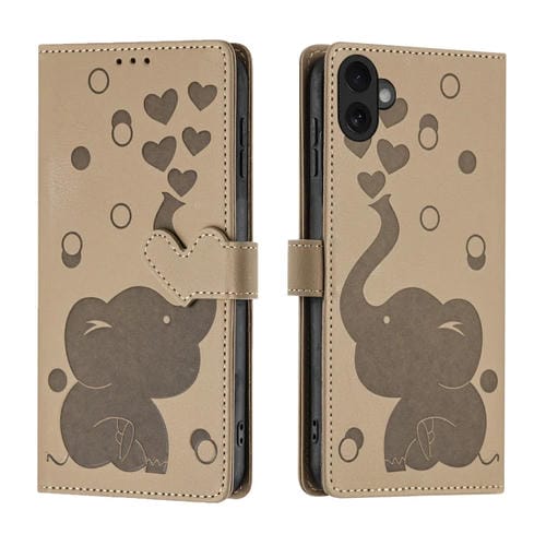 Funda de Cuero iPhone 16 Plus Relieve Elefante Dibujos Animados (Caqui)