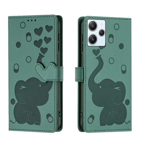 Funda de Cuero con Relieve de Elefante de Dibujos Animados para Redmi 12 4G/5G (Verde)