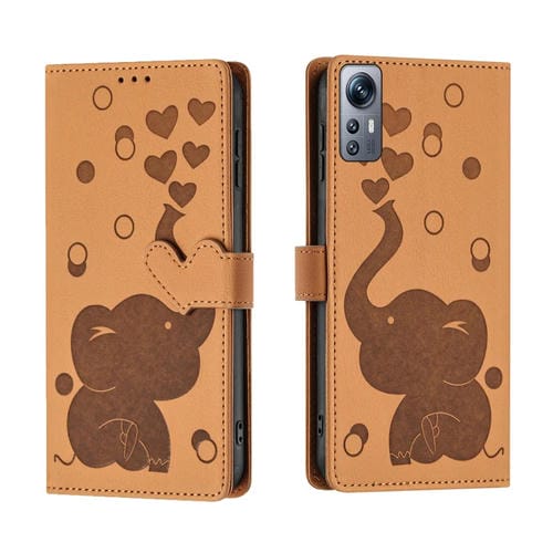 Funda de Cuero con Relieve de Elefante de Dibujos Animados para Redmi Note 12S 4G (Amarillo)