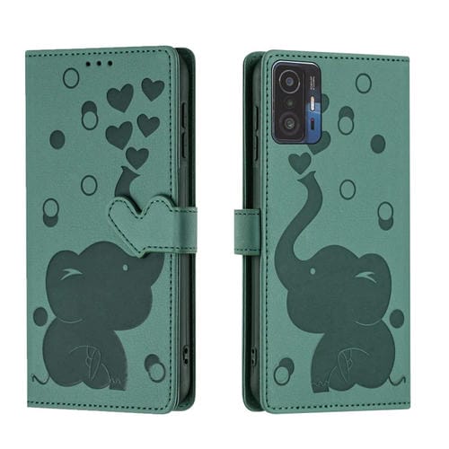 Funda de Cuero con Relieve de Elefante de Dibujos Animados para Xiaomi 11T/11T Pro (Verde)