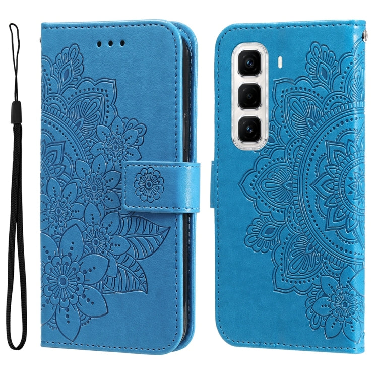 Funda de Cuero con Relieve Flores Siete Pétalos para Infinix Hot 50 Pro+ 4G (Azul)