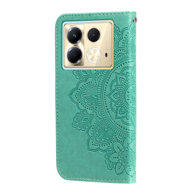 Funda de Cuero con Relieve Flores Siete Pétalos para Infinix Note 40 5G (Verde)
