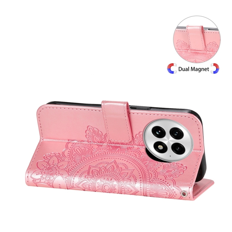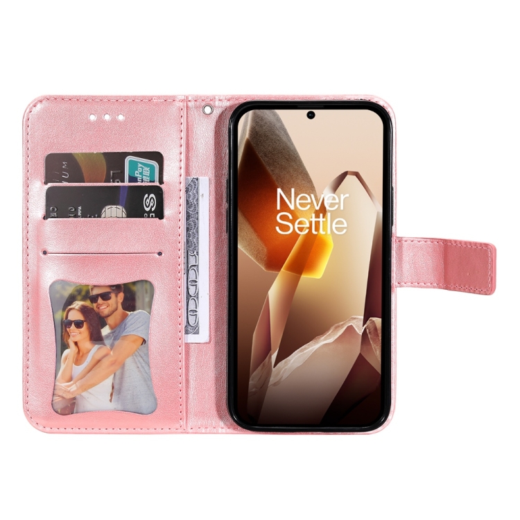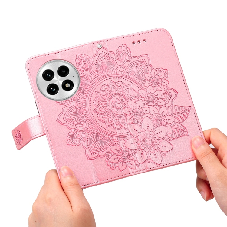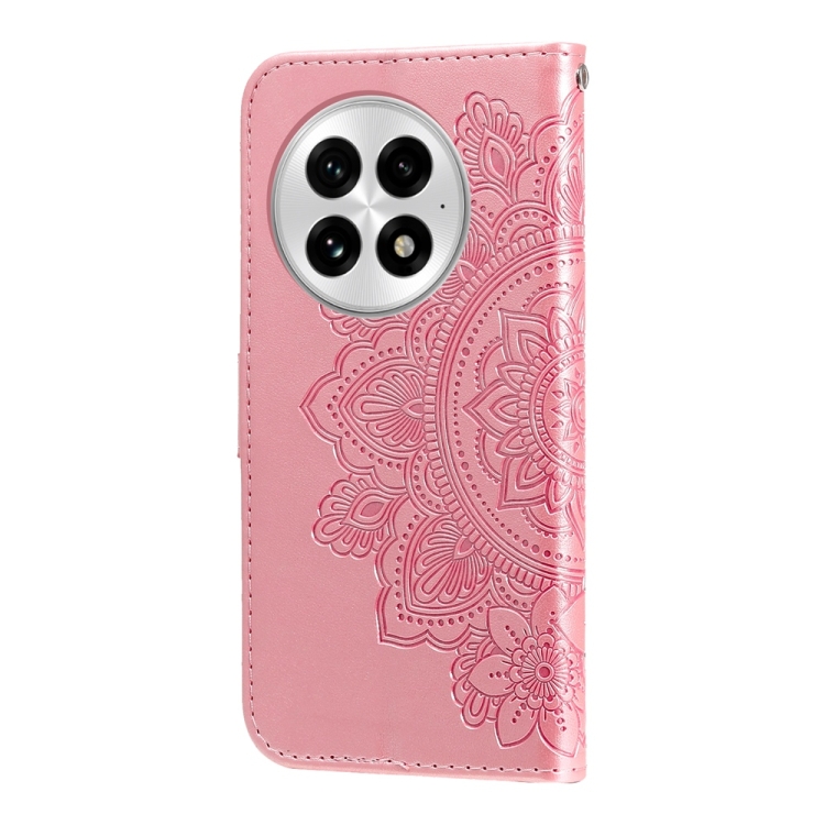 Funda de Cuero con Relieve Flores de Siete Pétalos para OnePlus 13 (Oro Rosa)