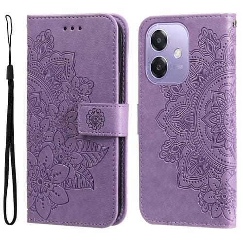 Funda de Cuero con Relieve de Flores de Siete Pétalos para Oppo A3X 4G/A3X 5G (Morado Claro)