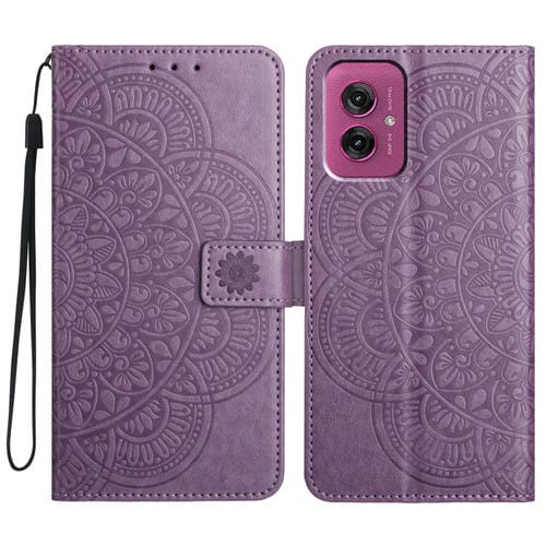 Funda de Cuero con Relieve Floral para Motorola Moto G55 (Morado)