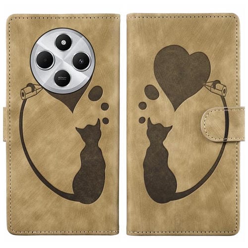 Funda de Cuero con Relieve de Gato y Corazón para Xiaomi Poco C75 (Albaricoque)