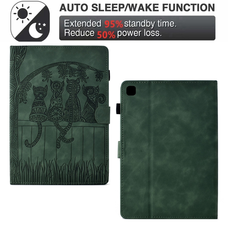 Funda para Tablet Samsung Galaxy Tab S6 Lite P610 Cuero Relieve Gatos (Verde)
