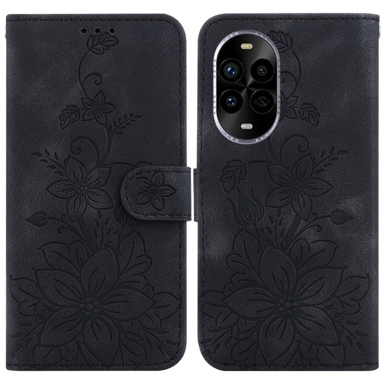 Funda de Cuero con Relieve de Lirio para Huawei Nova 13 Pro (Negra)