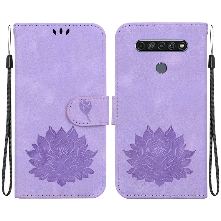 Funda de Cuero con Relieve de Loto para LG K61 (Morado)