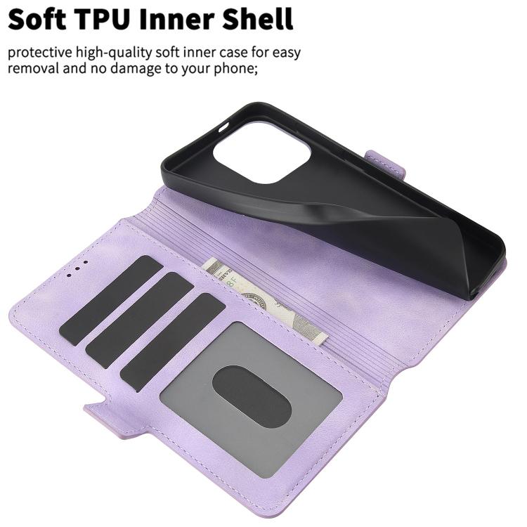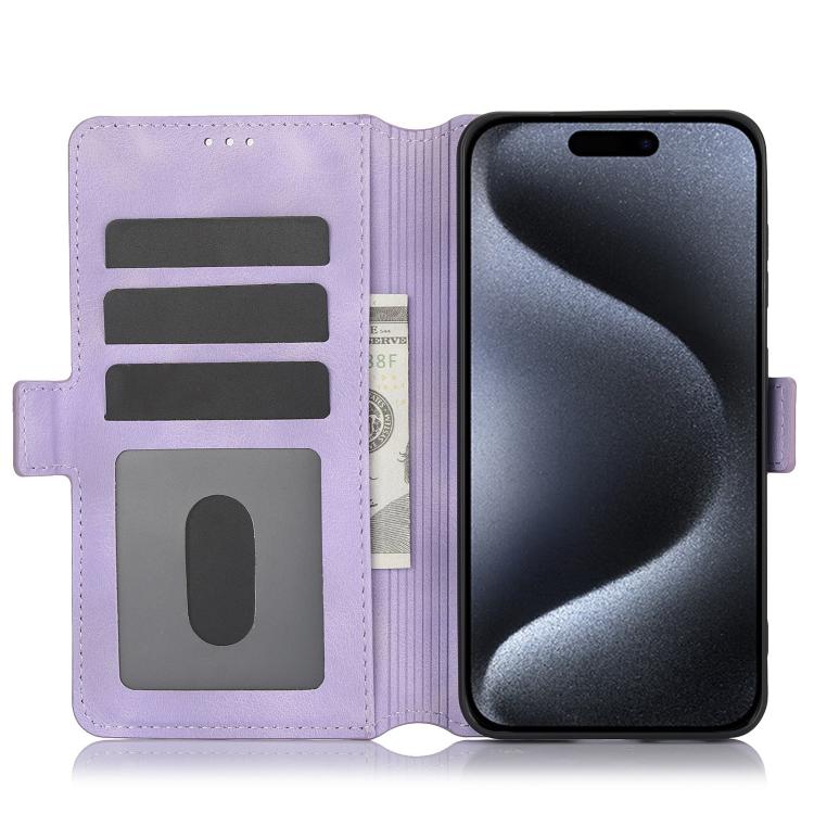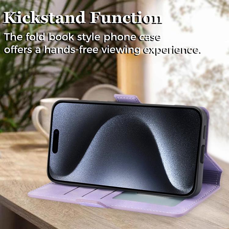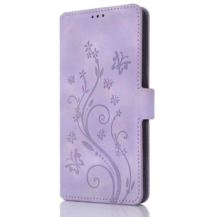 Funda de Cuero iPhone 15 Relieve Mariposa y Flor Amor Ensueño (Morado)