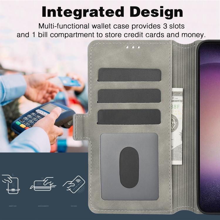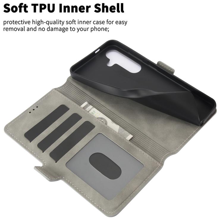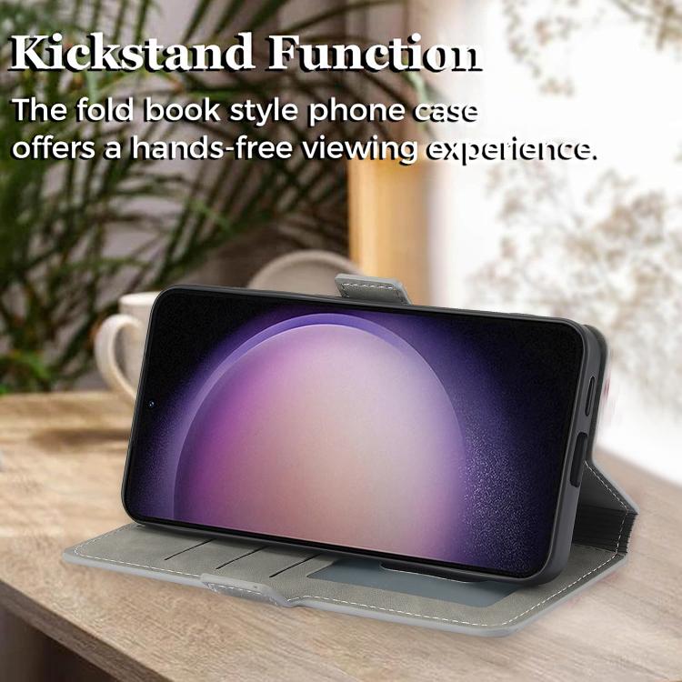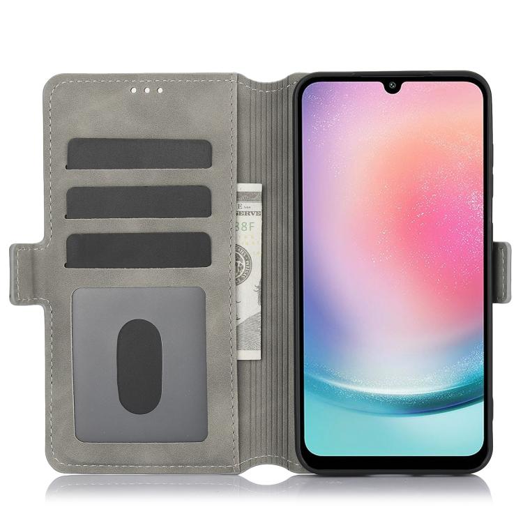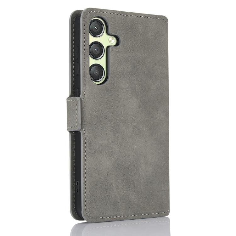 Funda de Cuero Samsung Galaxy A25 5G Global Dreamy Relieve Mariposa y Flor de Amor (Gris)
