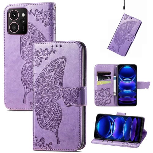 Funda de Cuero para Teléfono HMD Skyline con Relieve de Mariposa y Flor (Lavanda)
