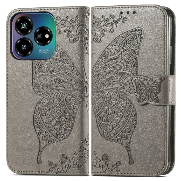 Funda de Cuero con Relieve Mariposa y Flor para ZTE Blade V60 Vita (Gris)
