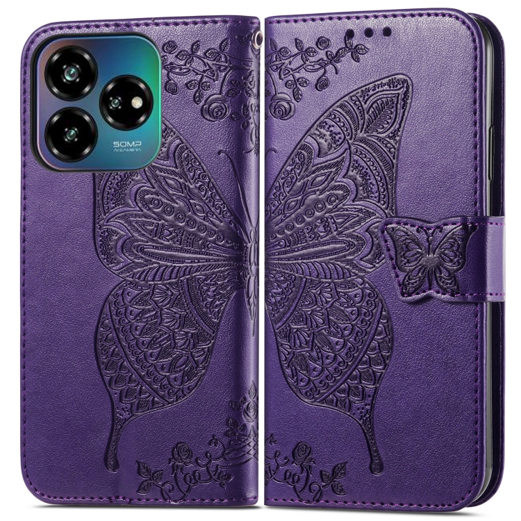 Funda de Cuero con Relieve Mariposa y Flor para ZTE Blade V60 Vita (Morado Oscuro)