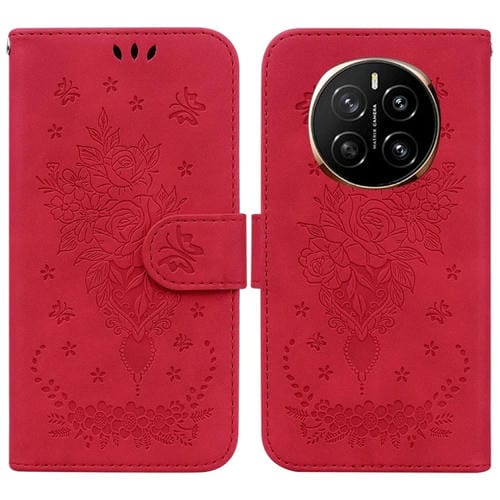 Funda de Cuero con Relieve Mariposa y Rosa para Honor Magic7 (Roja)