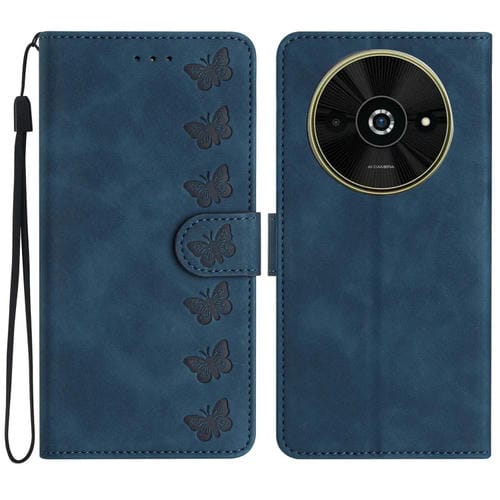 Funda de Cuero con Relieve de Siete Mariposas para Xiaomi Poco C61 (Azul)