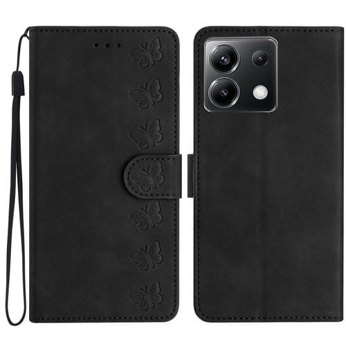 Funda de Cuero con Relieve de Siete Mariposas para Xiaomi Poco X6 (Negra)