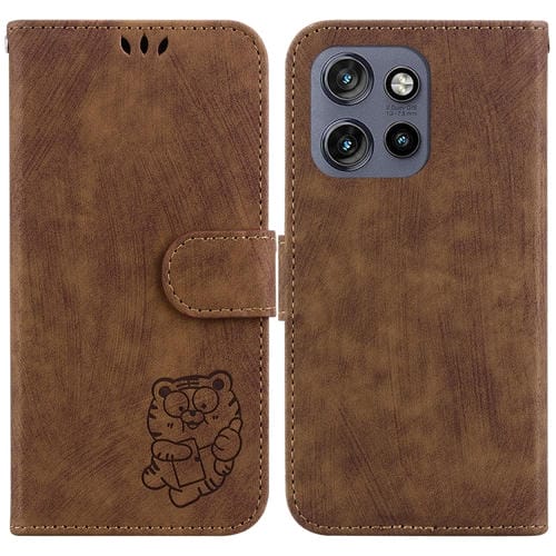 Funda de Cuero con Relieve de Tigre para Motorola Edge 50 Neo 5G Global (Marrón)