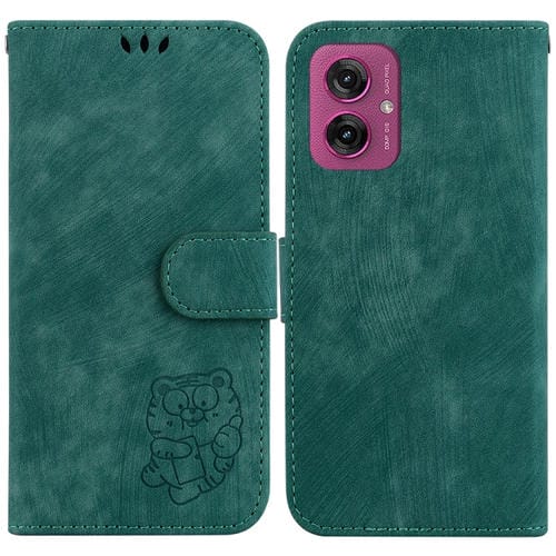 Funda de Cuero con Relieve de Tigre para Motorola Moto G55 (Verde)