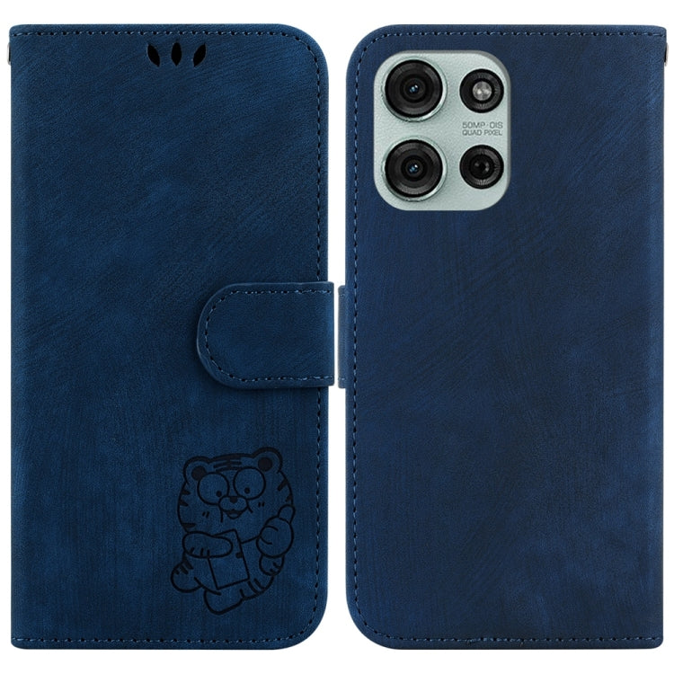Funda de Cuero con Relieve de Tigre para Motorola Moto G75 5G (Azul Oscuro)