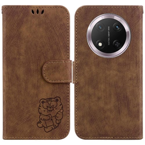 Funda de Cuero con Relieve de Tigre para Honor X9C (Marrón)