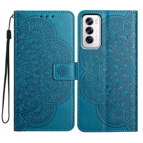 Funda de Cuero con Relieve Floral para Oppo Reno12 Global (Azul)