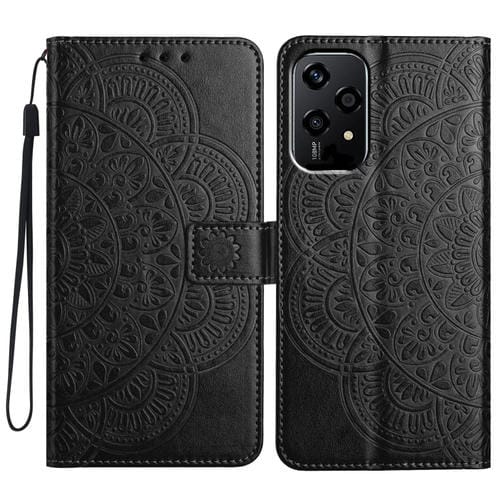 Funda de Cuero con Relieve Floral para Honor 200 Lite (Negra)