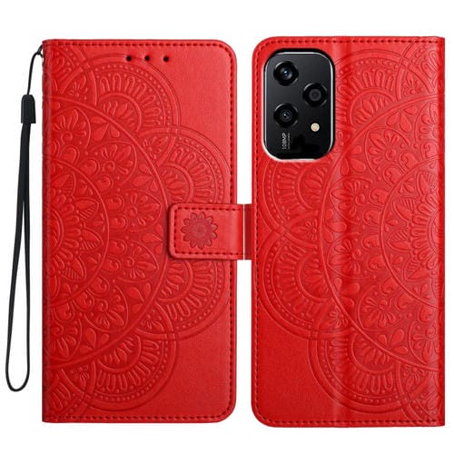 Funda de Cuero con Relieve Floral para Honor 200 Lite (Roja)
