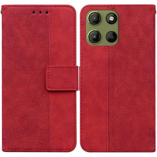 Funda de Cuero con Relieve Geométrico para Motorola Moto G15 (Rojo)