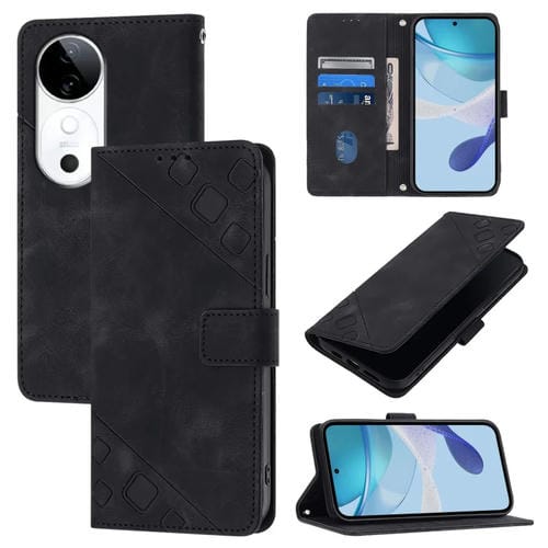 Funda de Cuero con Relieve para Teléfono con Tacto de Piel para Vivo S19 (Negra)