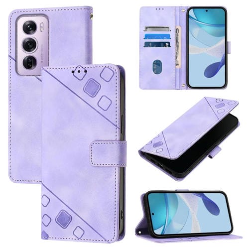 Funda de Cuero con Relieve para Teléfono Oppo Reno12 Pro Global Skin-Feel (Morado Claro)