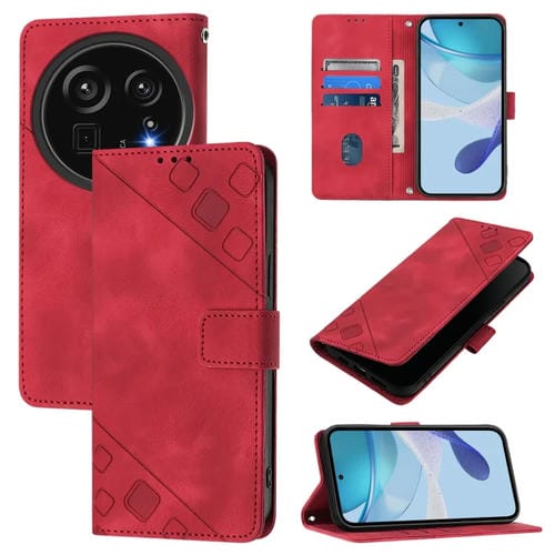 Funda de Cuero con Relieve para Teléfono Sharp Aquos R9 Pro (Rojo)