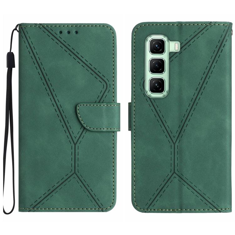 Funda de Cuero con Relieve y Costuras para Infinix Hot 50 5G (Verde)