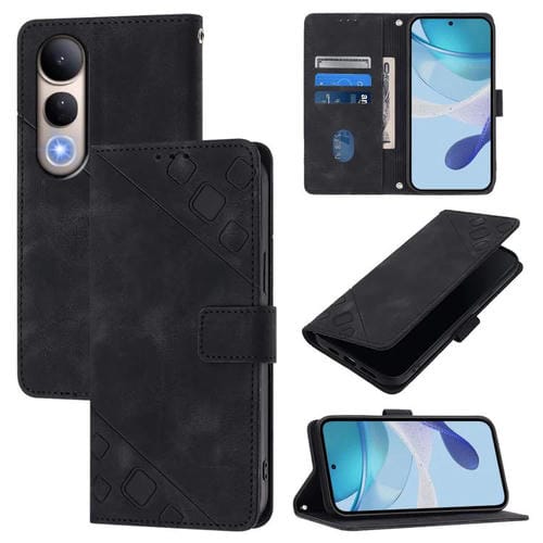 Funda de Cuero con Relieve para Honor 400 Lite con Tacto de Piel (Negra)