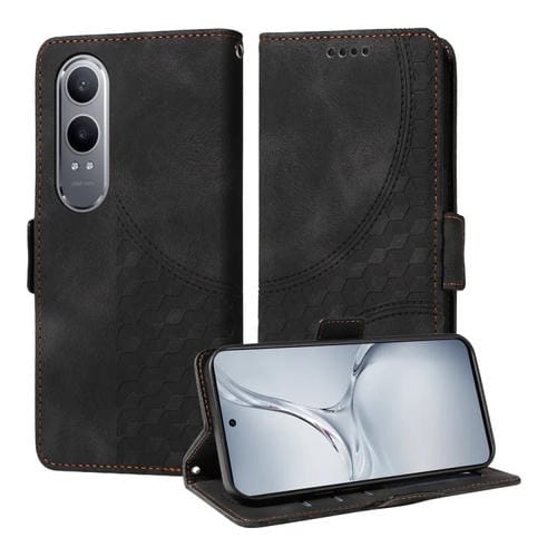 Funda de Cuero con Rombos En Relieve y Estrellas para Oppo K12X (Negra)