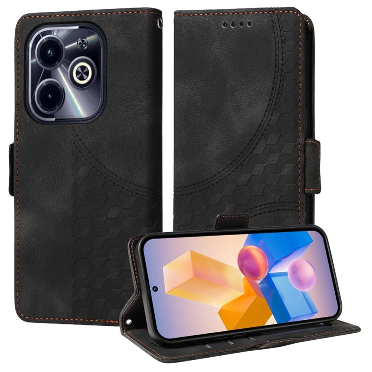 Funda de Cuero para Infinix Hot 40I con Rombos en Relieve y Estrellas (Negra)